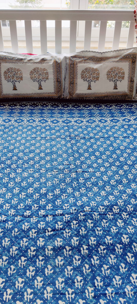 Handblockbedruckte Jaipuri Razai/ Steppdecke – Himmelblau