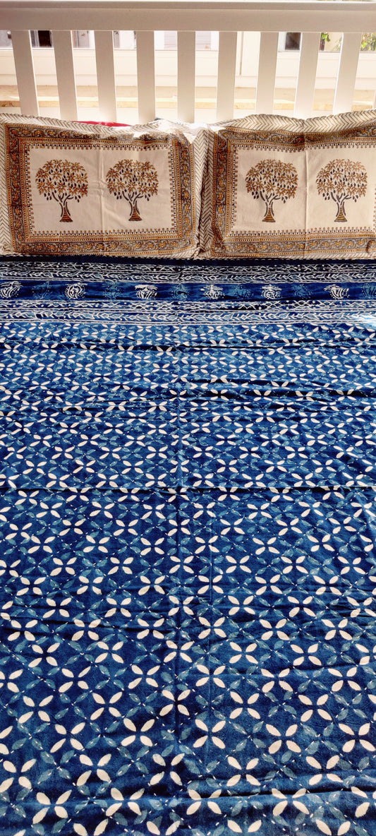 INDISCHER HIMMELBLAUER, HANDBLOCKBEDRUCKTER BETTBEZUG