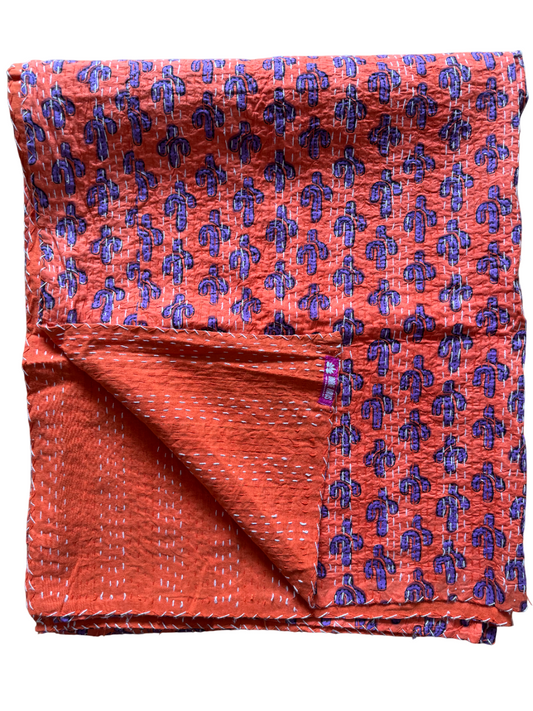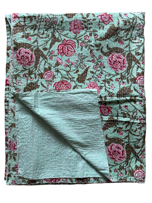 Überwurf aus handbedruckter Baumwolle mit Lily-Motiv