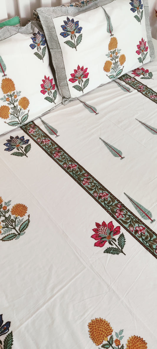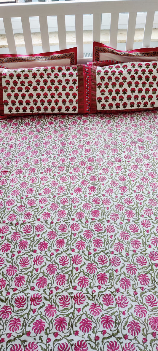 Werten Sie die Einrichtung Ihres Schlafzimmers mit unseren handgefertigten indischen Bettlaken auf. Diese einzigartigen Stücke werden mit jahrhundertealten Techniken handwerklich hergestellt und verfügen über aufwendige handgedruckte Designs auf hochwertiger Baumwolle für Komfort und Haltbarkeit. Verleihen Sie Ihrem Zuhause Eleganz mit leuchtenden Farben und zeitlosen Mustern. Kaufen Sie jetzt ein und erleben Sie traditionelle indische Handwerkskunst.