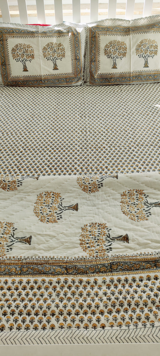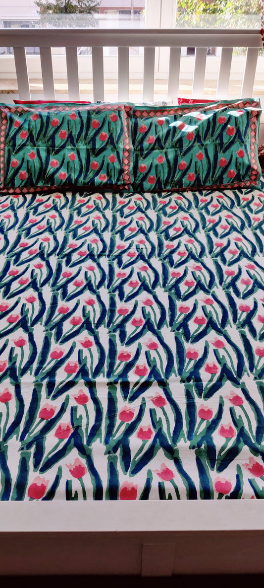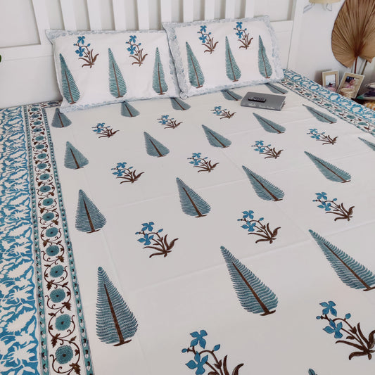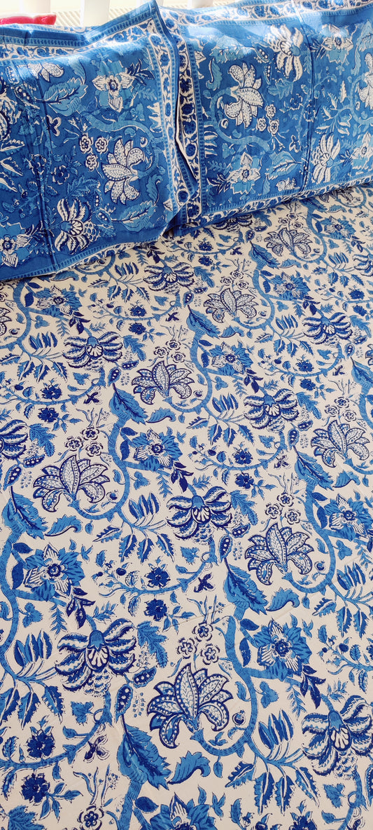 Bettlaken aus handbedruckter Baumwolle mit Vogelgesang