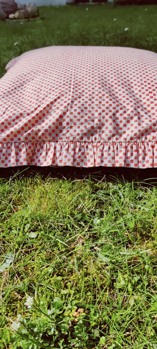 KISSENBEZUG AUS BAUMWOLLE MIT HANDBLOCKDRUCK UND RÜSCHEN - FLORA PINK