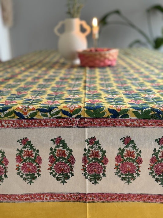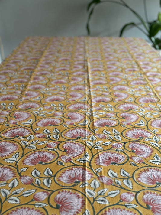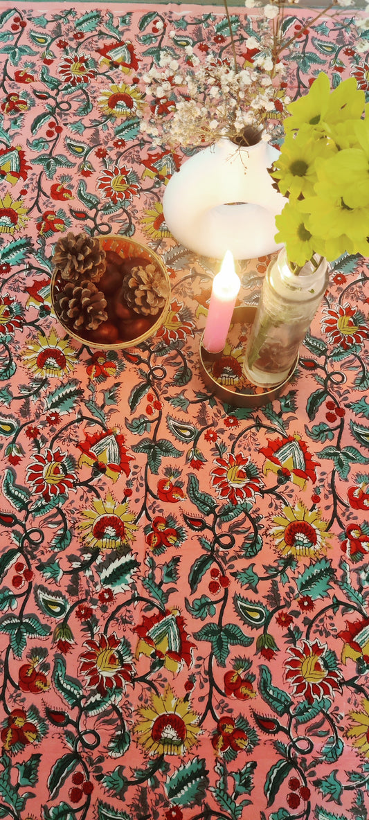 AusverkauftRosa Tischdecke aus Baumwolle mit Handblockdruck
