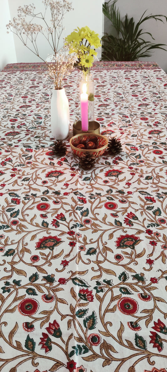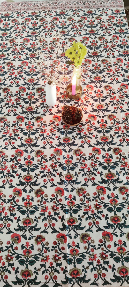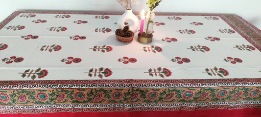 WEISS-ROTE TISCHDECKE AUS BAUMWOLLE MIT HANDBLOCKDRUCK
