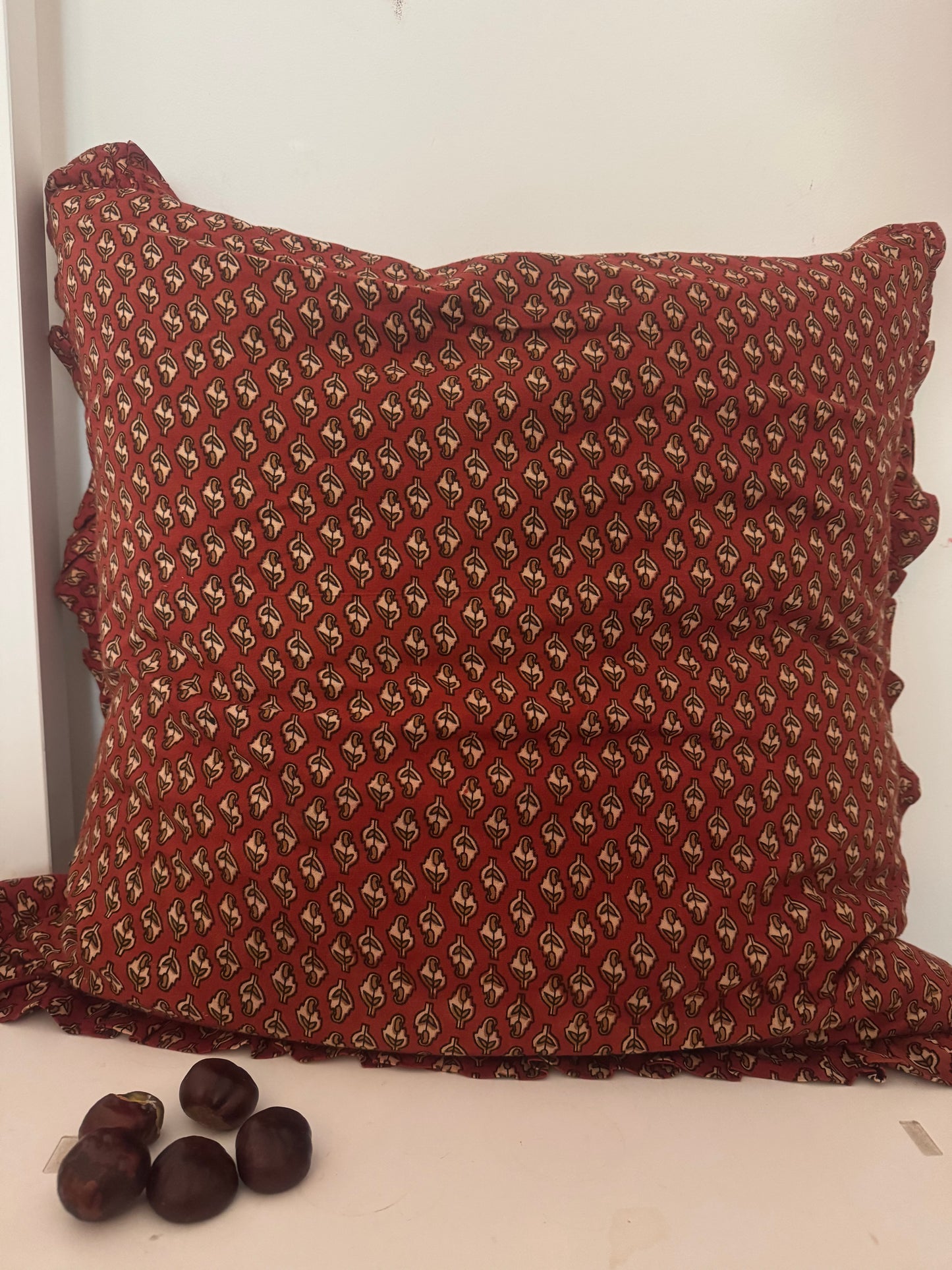 KISSENBEZUG MIT HANDBLOCKDRUCK - FLORAL KORALLE