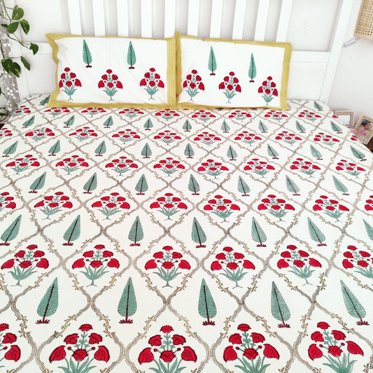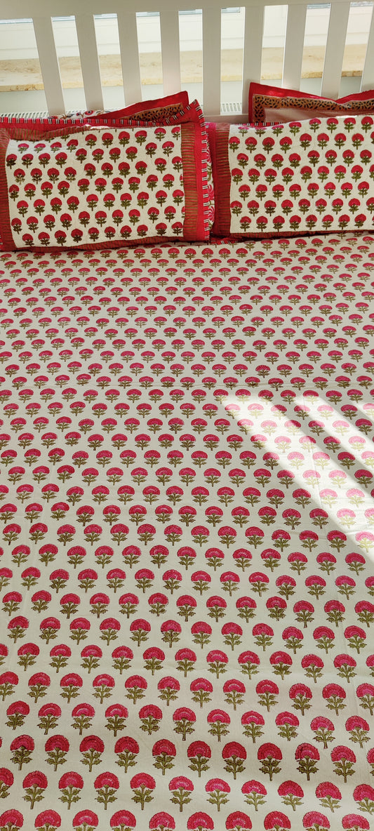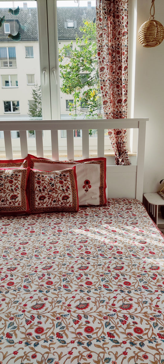 DRAP PLAT EN COTON IMPRIMÉ À LA MAIN BLANC-ROUGE