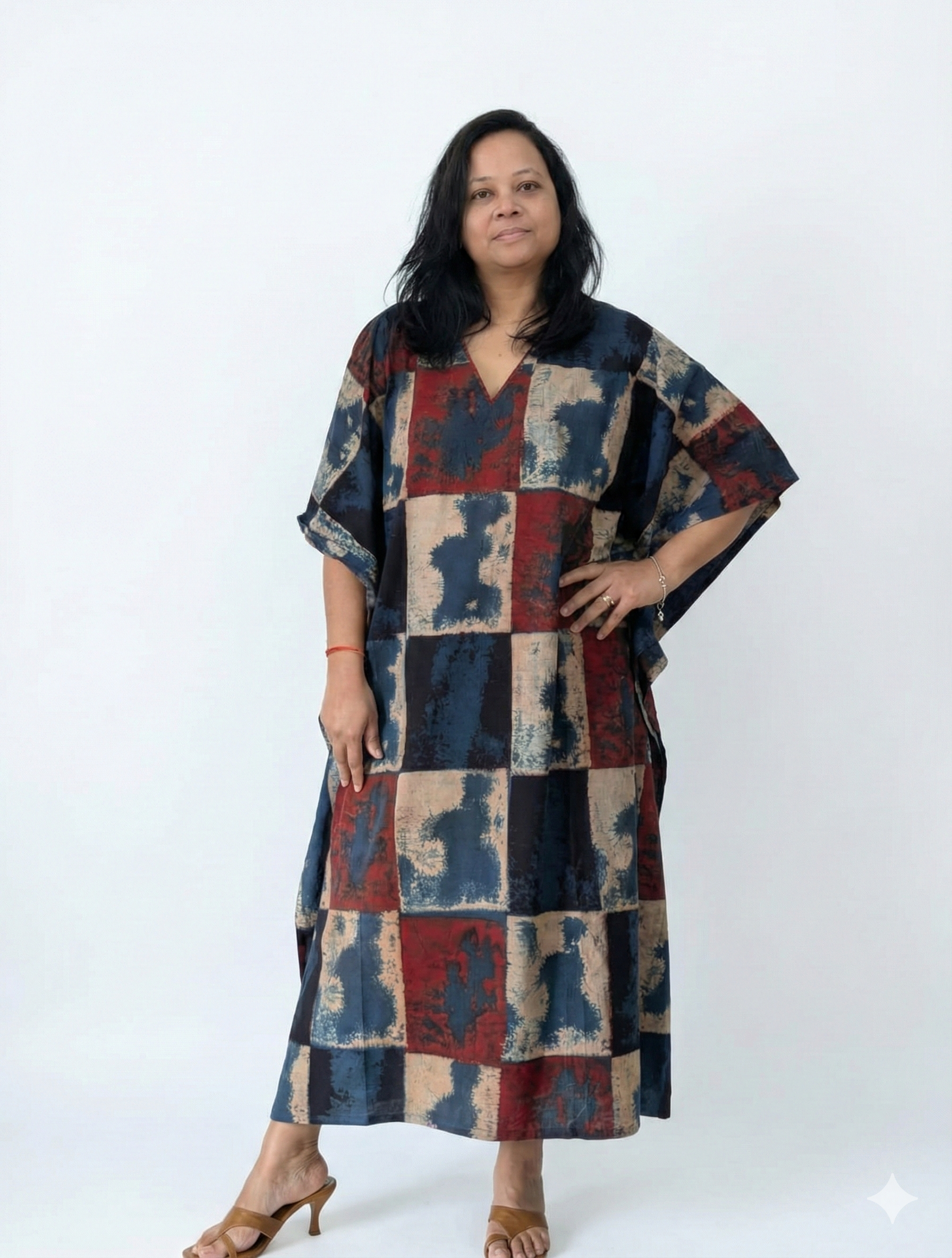 THESE KAFTANS ARE FREE SIZE AND CAN FIT UPTO THE SIZE MENTIONED BELOW: