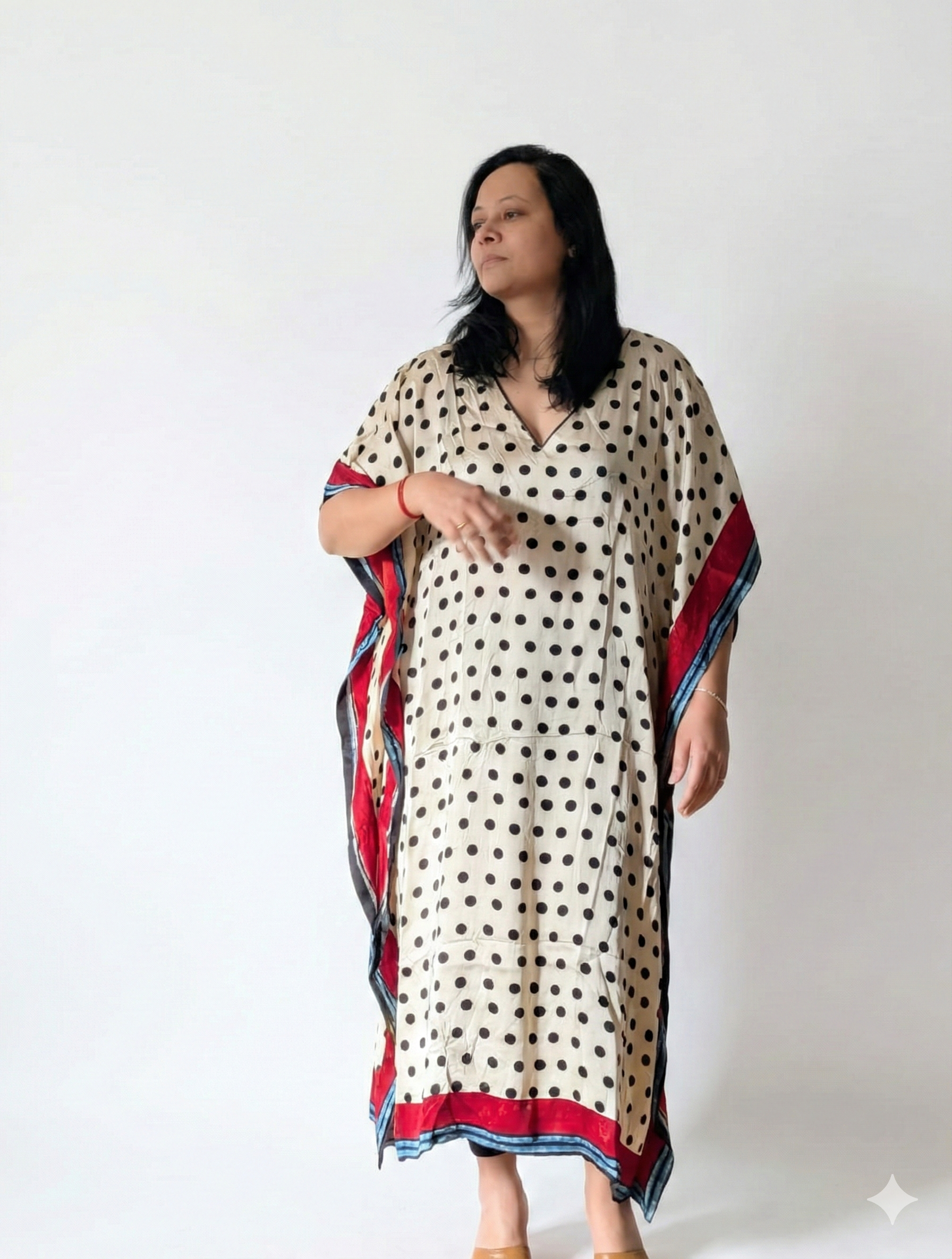 HAND BLOCK PRINTED MODAL SILK KAFTAN - POLKA DOTS